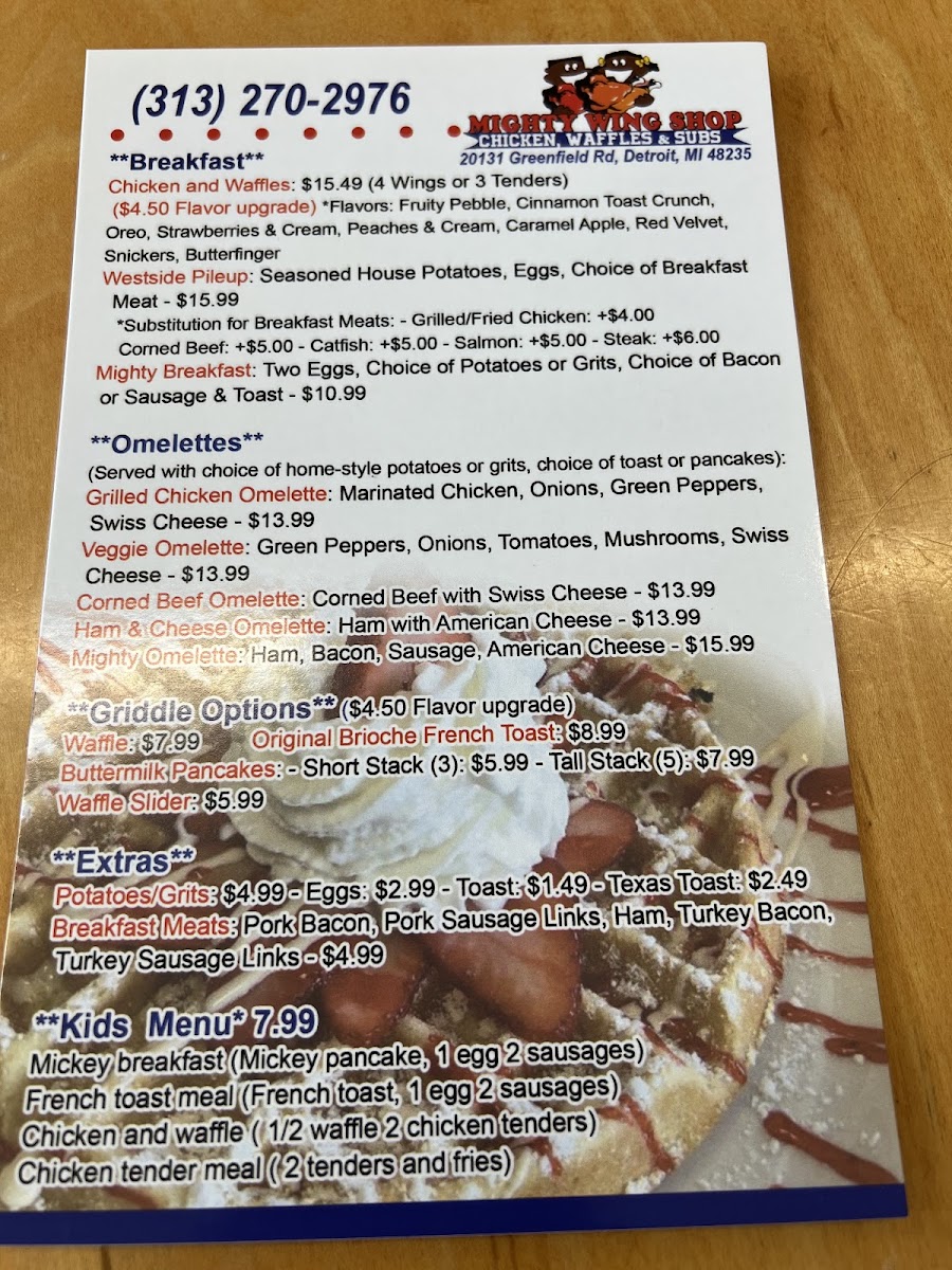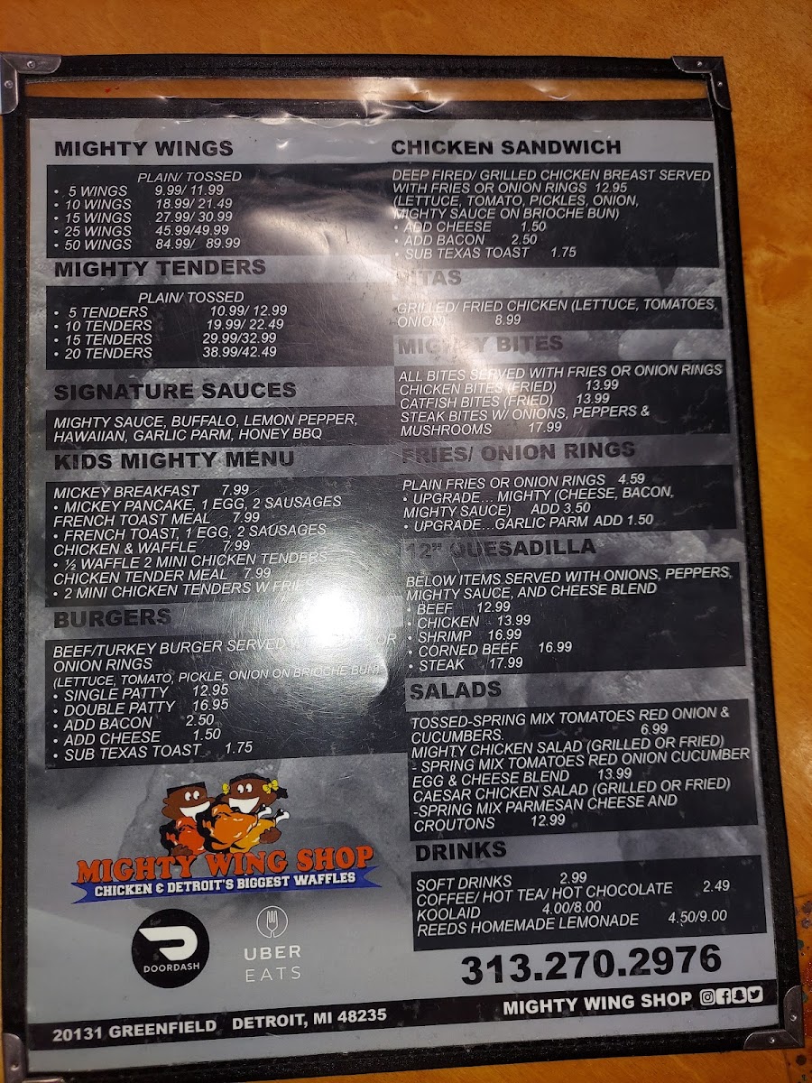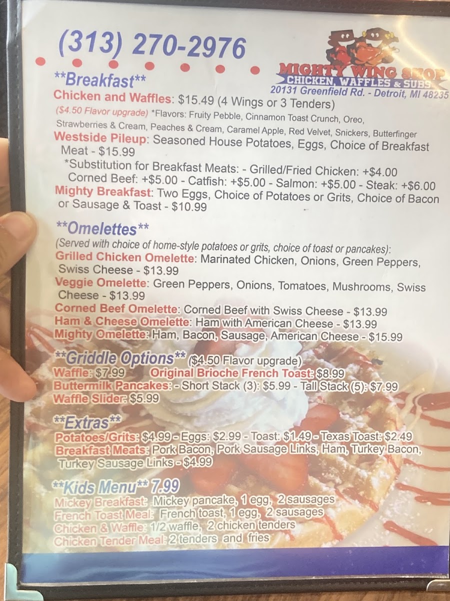Welcome to the Mighty Wing Shop, a culinary gem nestled in Detroit at 20131 Greenfield Rd. Renowned for its delectable fried chicken, flavorful wings, and a unique twist on breakfast classics, this spot is fast becoming a favorite among locals and visitors alike.