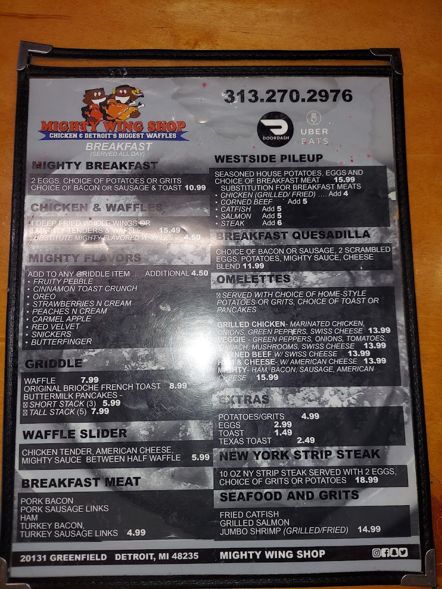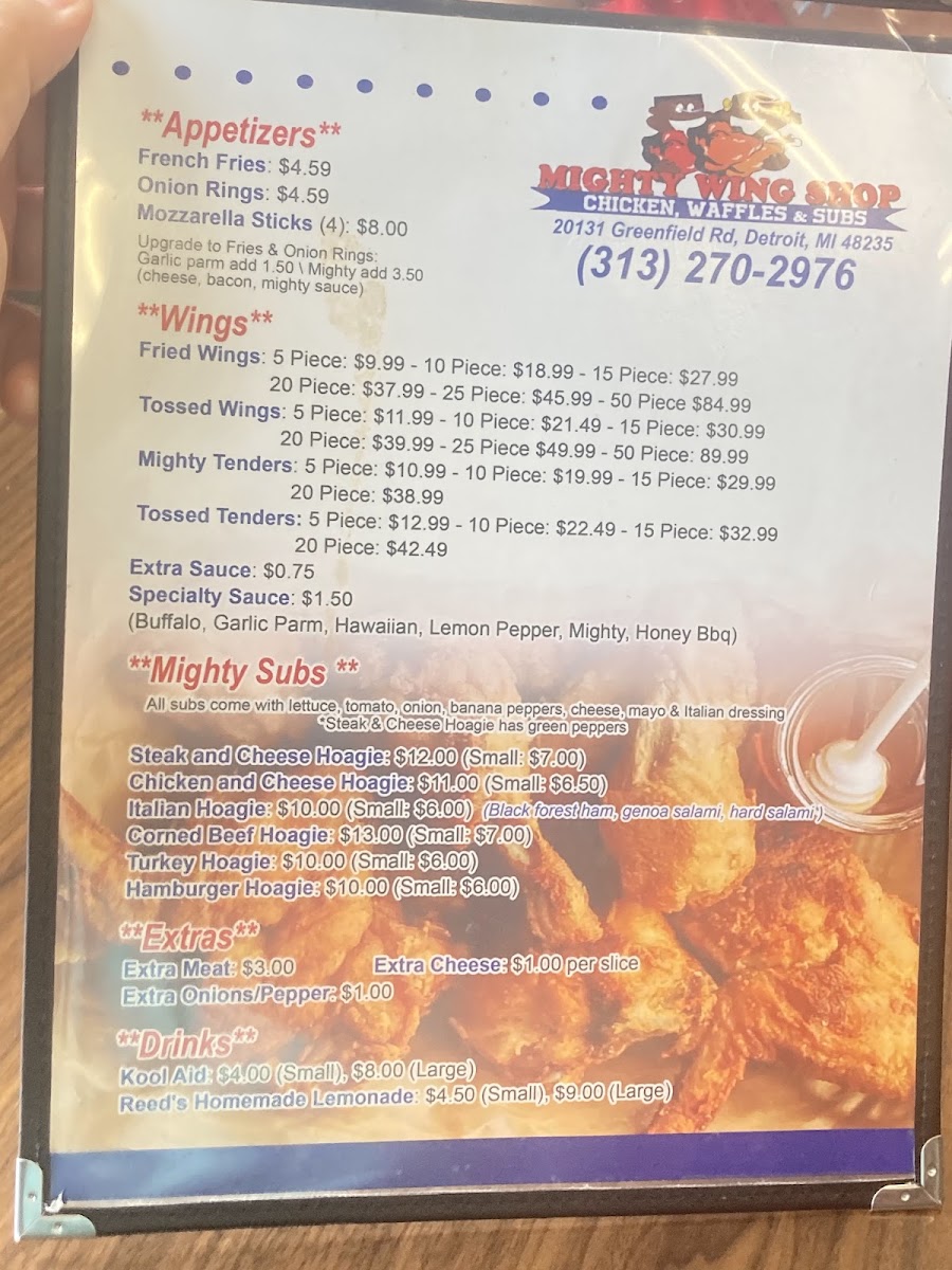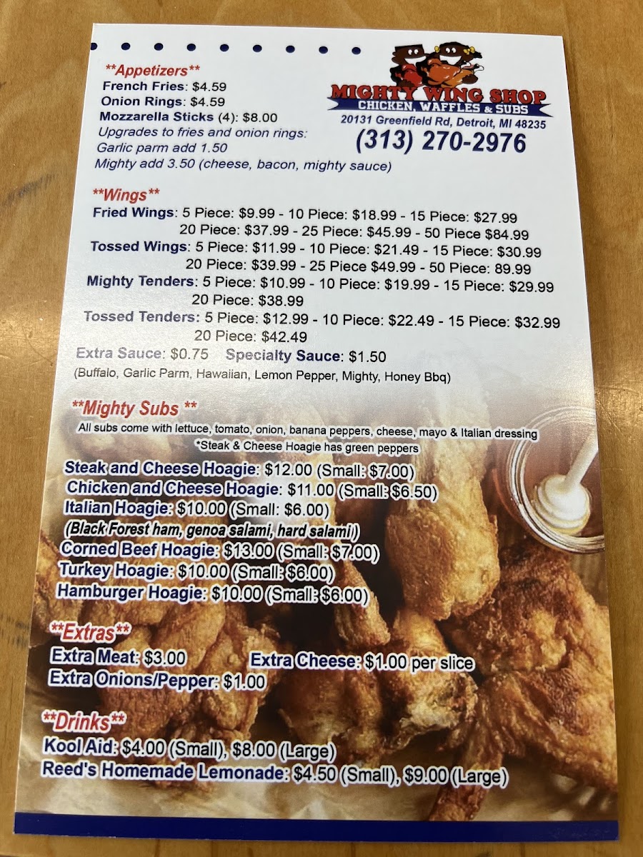 Welcome to the Mighty Wing Shop, a culinary gem nestled in Detroit at 20131 Greenfield Rd. Renowned for its delectable fried chicken, flavorful wings, and a unique twist on breakfast classics, this spot is fast becoming a favorite among locals and visitors alike.